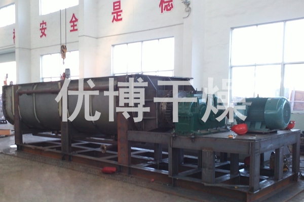 高嶺土專用槳葉干燥機(jī)的空心軸上密集排列著楔型中空漿葉,熱介質(zhì)經(jīng)空心軸流經(jīng)漿葉。單位有效容積內(nèi)傳熱面積很大,熱介質(zhì)溫度從-40℃到320℃,可以是水蒸汽,也可以是液體型:如熱水、導(dǎo)熱油等。間接傳導(dǎo)加熱,沒(méi)有攜帶空氣帶走熱量,熱量均用來(lái)加熱物料。熱量損失僅為通過(guò)器體保溫層向環(huán)境的散熱。楔型漿葉傳熱面具有自清潔功能。物料顆粒與楔型面的相對(duì)運(yùn)動(dòng)產(chǎn)生洗刷作用,能夠洗刷掉楔型面上附著物料,使運(yùn)轉(zhuǎn)中一直保持著清潔的傳熱面。漿葉干燥機(jī)的殼體為Ω型,殼體內(nèi)一般安排二到四根空心攪拌軸。殼體有密封端蓋與上蓋,防止物料粉塵外泄而充分發(fā)揮作用。